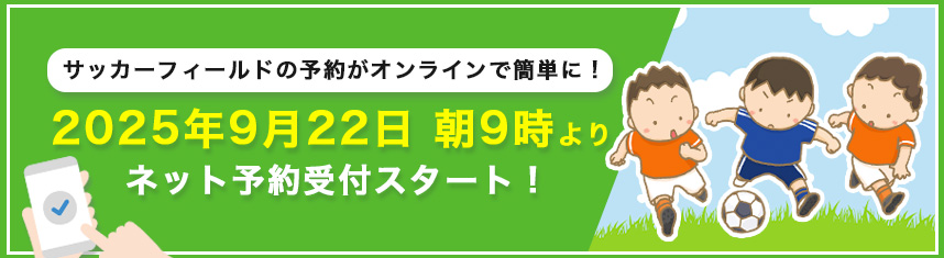 9月22日(月)より、人工芝サッカーフィールドのネット予約が可能となります! 投稿日: 2025年9月3日2025年9月3日 投稿者: noppo いつもご利用いただき有難うございます。 9月22日(月)朝9時より、人工芝サッカーフィールドのご予約がホームページから可能になります。 ご利用を予定されている方は、ぜひネット予約をご活用ください。